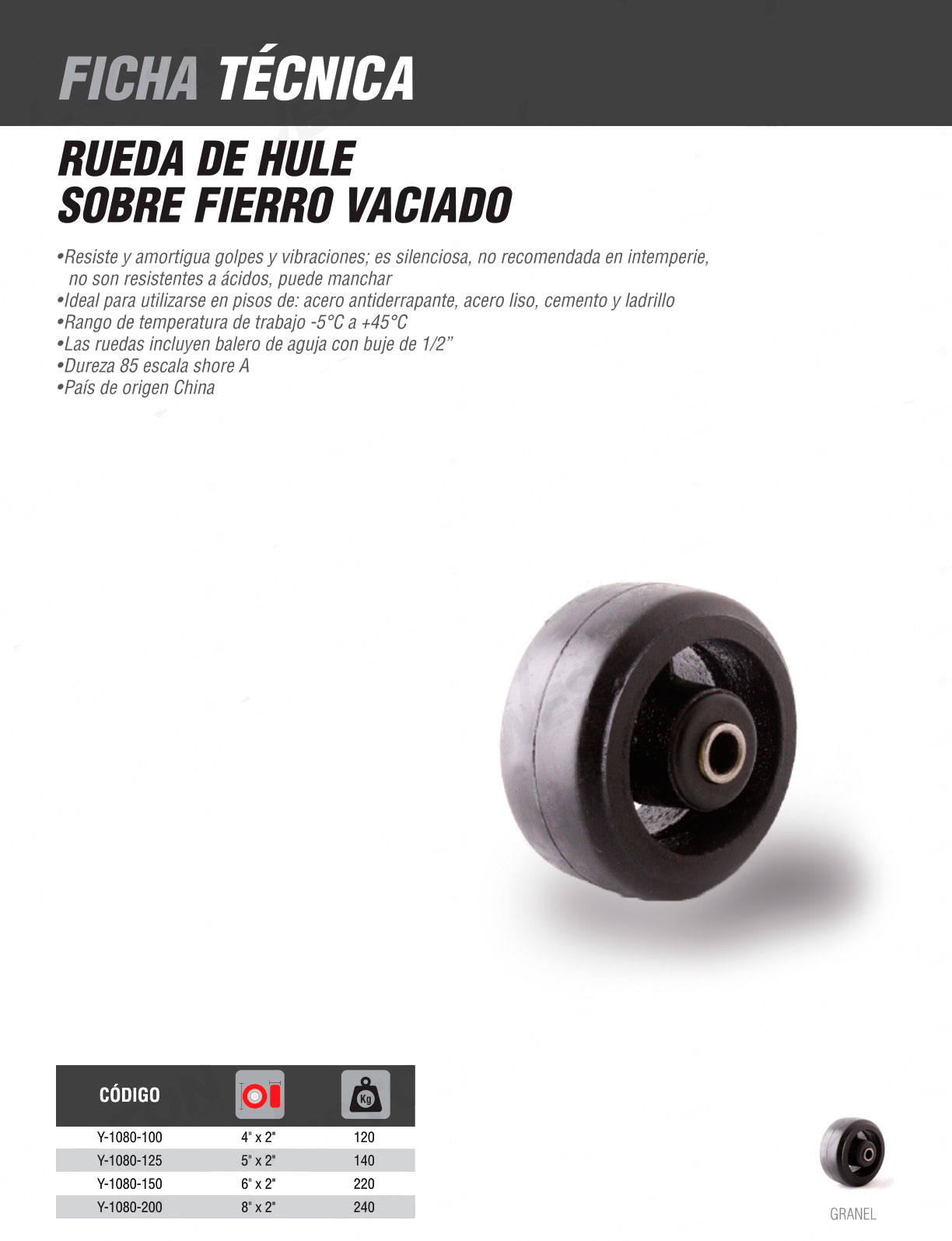 Modelos disponibles en Hule sobre fierro vaciado